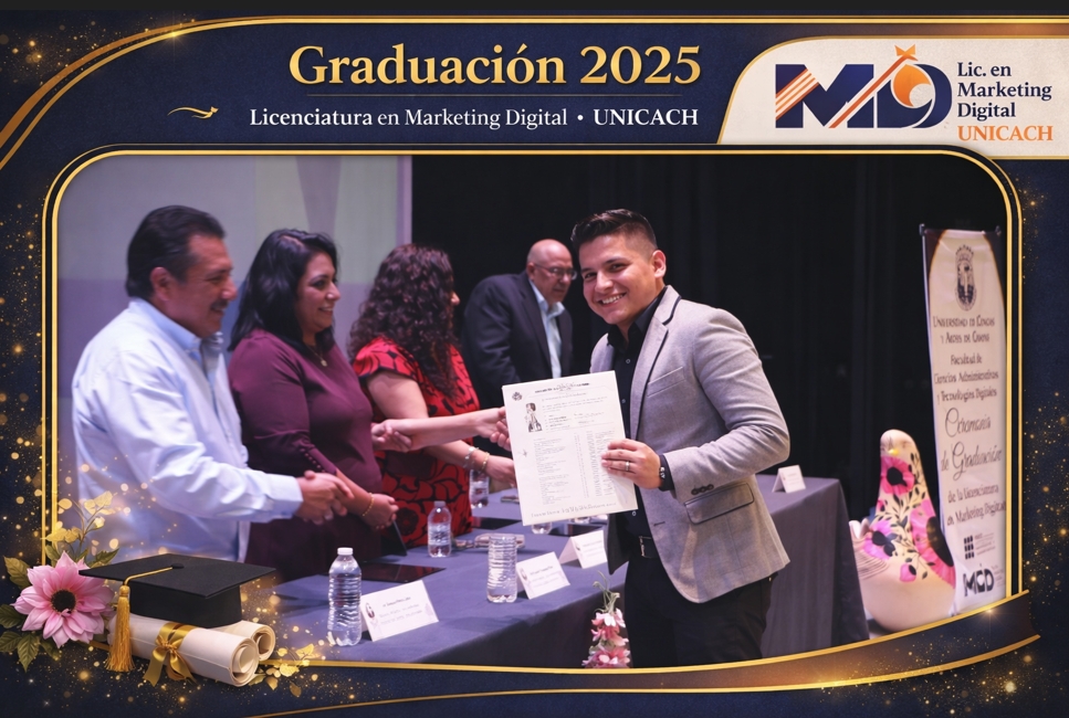 En este apartado se publican las fotografías oficiales de la Graduación 2025 de la Licenciatura en Marketing Digital, con el propósito de que la comunidad estudiantil puedan consultarlas como recuerdo de este logro académico.
